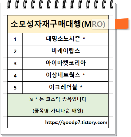 기업의 유지.보수,운영 등에 필요한 공구나 문구 등 소모성 자재를 대신 구매해 공급하는