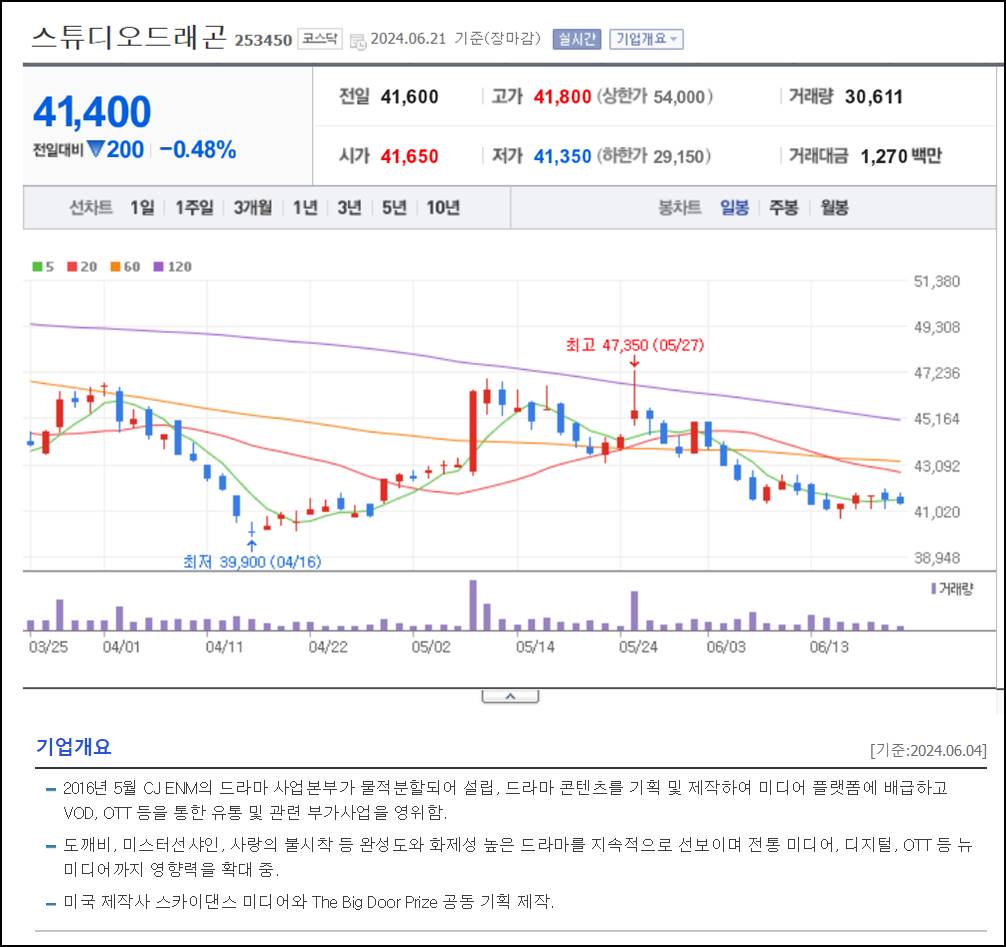 - 업종: 방송 프로그램 제작