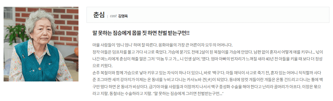 그런 복철에게 가족은 할머니와 백구다.