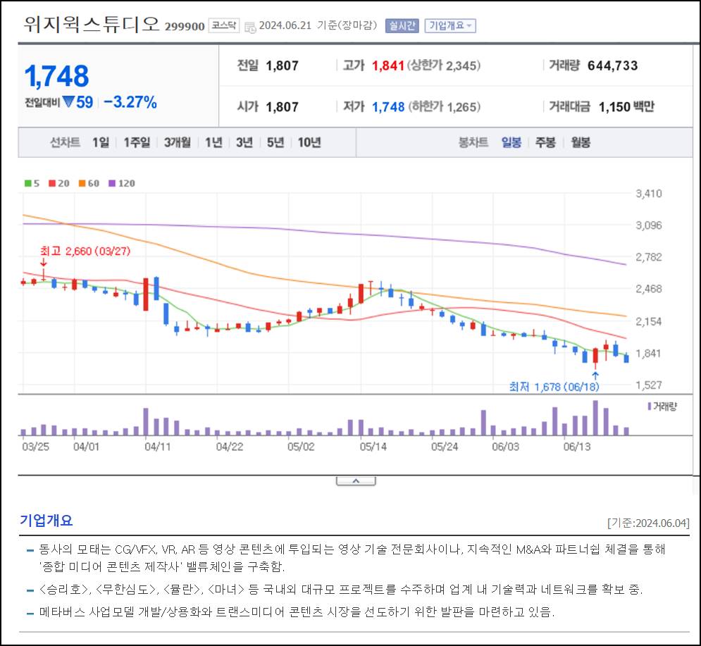- 모회사 : 위지윅스튜디오