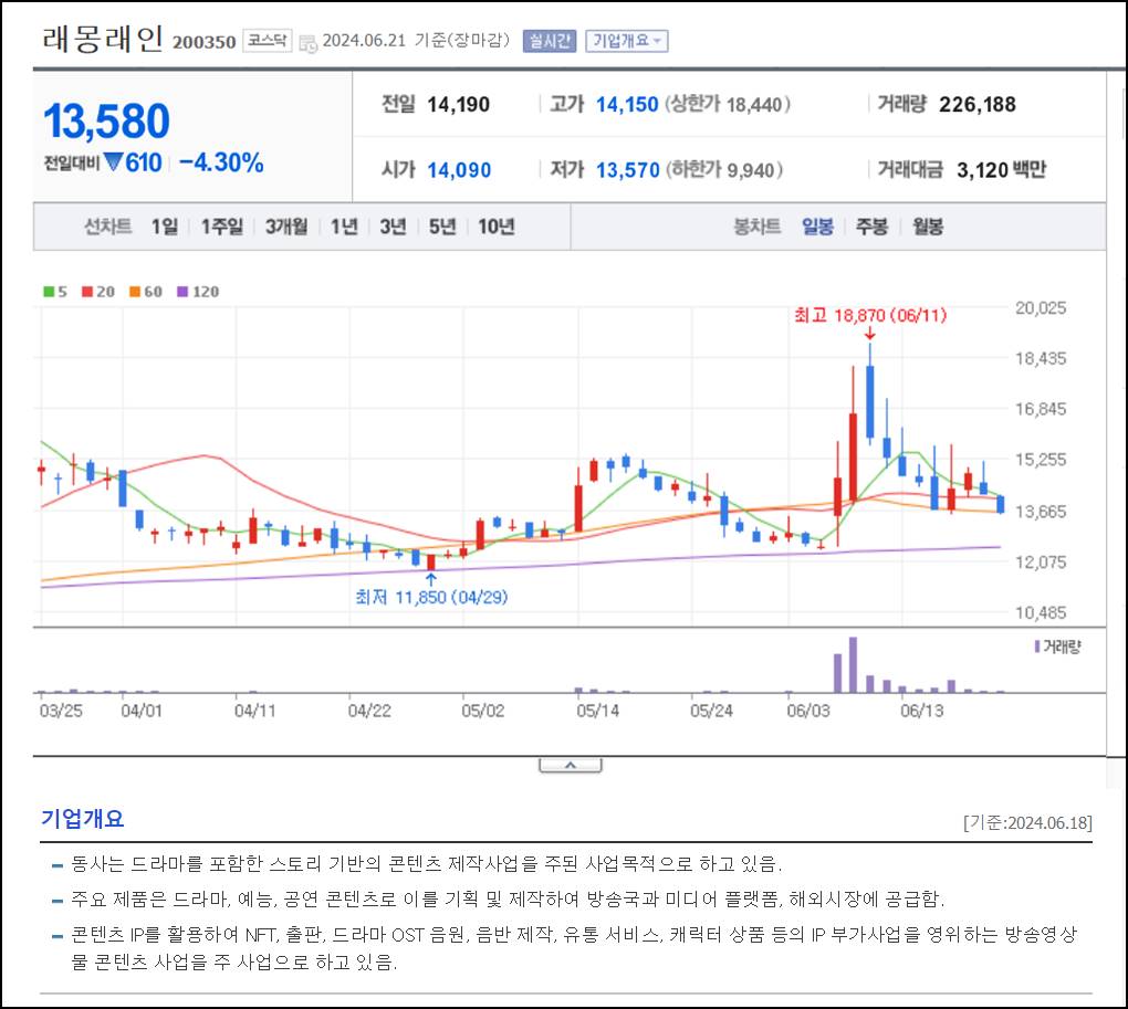 - *콘텐츠 IP를 활용하여 NFT, 출판, 드라마 OST 음원, 음반 제작, 유통 서비스, 캐릭터 상품 등의 IP 부가사업을 영위하는 방송영상물 콘텐츠 사업을 주 사업으로 하고 있음.